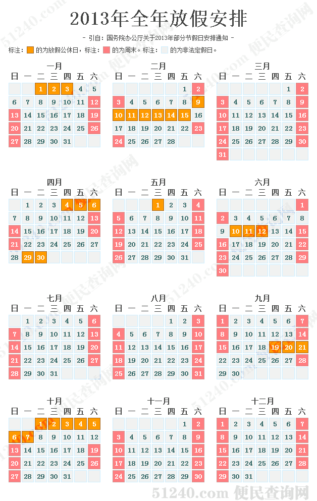 2013年國(guó)家法定節(jié)假日放假時(shí)間安排