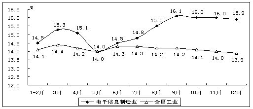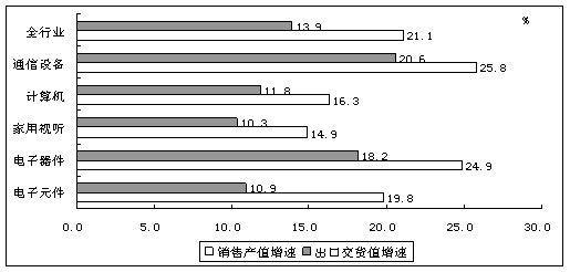 2011年是我國電子信息產業調整轉型的重要一年。面對國際環境新變化和國內經濟運行新形勢,全行業努力克服各種困難,不斷鞏固和擴大應對國際金融危機的成果,產業發展呈現出生產較快增長、投資高位運行、外貿出口逐步趨穩、結構調整扎實推進的良好局面,為推動信息化發展和促進兩化融合發揮積極作用,在國民經濟發展中的地位不斷提高。 一、產業地位保持領先,經濟貢獻日益突出 (一)在工業行業中保持領先地位 2011年,規模以上電子信息制造業增加值、投資增速分別高于工業平均水平2.0和近20個百分點。行業收入、利潤占全國工業比重分別達到8.9%和6.1%,電子制造業在整體工業中的領先和支柱作用日益凸顯。 (二)對國民經濟的貢獻日益加大 2011年,規模以上電子信息制造業從業人員940萬人,比2010年新增60萬人,占全國城鎮新增就業人口的4.9%。上繳稅金1245億元,同比增長31.0%,增速高出全國工業平均水平6.2個百分點。電子信息產品進出口總額達11292.3億美元,占全國外貿進出口總額的31.0%。電子信息產業在國民經濟中的重要性不斷提高。 (三)為信息化建設發揮有力支撐 截至2011年底,我國手機普及率達到73.6部/百人,比2010年提高9.2部/百人;3G網絡滲透率達到13.0%,比2010年提高7.5個百分點。我國互聯網普及率達到38.3%,比上年提高4.0個百分點;其中手機上網用戶占到網民總數的69.4%,比上年提高3.2個百分點。城鎮居民的彩電、計算機擁有率超過135臺/百戶和70臺/百戶,均比上年有所提高。金融、電信、電力、能源和政府等領域的軟件業務收入增勢迅猛;信息技術對其他行業的滲透進一步深化,為改造提升傳統產業、促進工業節能減排、扶持中小企業發展及推動通信業轉型發展等發揮積極作用。 (四)全球產業大國地位不斷凸顯 2011年,我國彩電、手機、計算機等主要電子產品產量占全球出貨量的比重分別達到48.8%、70.6%和90.6%,均名列世界第一。軟件業收入占全球軟件企業收入的比重超過15%。我國電子信息產業的國際地位不斷提高。 二、產業規模持續擴大,結構調整扎實推進 (一)產業規模穩步增長 2011年,我國電子信息產業實現銷售收入9.3萬億元,增幅超過20%;其中,規模以上制造業實現收入74909億元,同比增長17.1%;軟件業實現收入18468億元(快報數據),比上年增長35.9%。規模以上電子信息制造業實現銷售產值75445億元,同比增長21.1%。手機、計算機、彩電、集成電路等主要產品產量分別達到11.3億部、3.2億臺、1.2億臺和719.6億塊,同比增長13.5%、30.3%、3.4%和10.3%。 (二)經濟效益波動明顯 2011年,規模以上電子信息制造業實現主營業務收入74909億元,同比增長17.1%;實現利潤總額3300億元,同比增長16.8%。行業銷售利潤率為4.4%,與2010年基本持平;全年有6個月份的利潤呈下降態勢,波動較為明顯。行業主營業務成本占主營業務收入的比重達到88.7%,比2010年提高0.6個百分點。行業中虧損企業2497個,同比增長36.7%,企業虧損面達16.6%;虧損企業虧損額同比增長52.9%。 (三)外貿增速逐步趨穩 2011年,電子信息產品進出口增速呈前高后低態勢,全年進出口總額達到11292.3億美元,同比增長11.5%,占全國外貿總額的31.0%。其中,出口6612.0億美元,同比增長11.9%,增速比2010年同期下滑17.4個百分點,占全國外貿出口額的34.8%;進口4680.3億美元,同比增長11.0%,增速比2010年同期下降23.0個百分點,占全國外貿進口額的26.8%。出口額前三位的產品為:筆記本電腦1058.8億美元,增長11.1%;手機627.6億美元,增長34.3%;集成電路325.7億美元,增長11.4%。 (四)投資保持快速增長 2011年1-11月,電子信息產業500萬元以上項目完成固定資產投資8183億元,同比增長56%,高于工業投資29.2個百分點。其中,電池行業完成投資達1505億元,占全行業投資比重18.4%,同比增長111.7%,成為電子信息產業中投資最密集、增長最快的領域。1-11月,電子信息產業新開工項目6523個,同比增長59.1%,扭轉去年同期下滑局面。其中,電子元器件、信息機電和信息化學品制造行業新開工項目數增長均超過55%,個數占全行業70%。 (五)結構調整不斷深化 1、軟硬件比例趨于合理,行業結構不斷改善 2011年,我國電子信息產業中軟件業收入比重接近20%,與上年(17.5%)相比有明顯提高。在制造業中,隨著新型顯示器件、LED、光伏產品等領域的快速發展,電子元、器件和電子材料行業收入比重達到36.7%,比上年提高1.2個百分點。在軟件業中,服務化趨勢明顯,信息技術咨詢服務、數據處理和運營服務分別實現收入1864和3028億元,所占比重達到10.1%和16.4%,比上年提高0.7和1.1個百分點。 2、內銷市場穩步增長,產業對外依存度下降 2011年,規模以上電子信息制造業實現內銷產值34165億元,同比增長31.0%,比行業銷售產值增速和出口交貨值增速高9.9和17.1個百分點。電子制造業對外依存度(54.7%)比上年下降3.5個百分點。 3、內資企業快速發展,本土企業實力增強 2011年,規模以上電子信息制造業中內資企業銷售產值、出口交貨值增速分別達到31.1%和16.4%,高于行業平均水平10.0和2.5個百分點。內資企業經營水平不斷提高,銷售利潤率達到6.6%,高于行業平均水平2.2個百分點。 4、產業轉移步伐加快,區域結構持續優化 2011年,中、西部地區規模以上電子信息制造業銷售產值增長63.1%和74.3%,高出全國平均水平42和53.2個百分點;兩個地區實現出口交貨值增長均超過110%。東部地區電子制造業銷售產值和出口交貨值增長15.9%和9.1%,