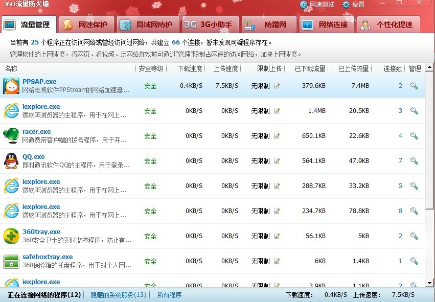 過了幾分鐘后,我再用360流量管理查看,發現PPS有一個進程,又偷偷的運行了。