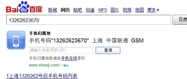 我用百度搜索歸屬地,顯示的是上海的號。而我在上海是沒有認(rèn)識的人的。