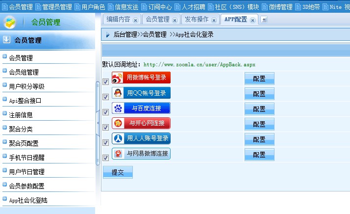 全新集成新浪微博、百度、QQ互聯、網易、人人、開心六大網站社會化登陸, 為站點贏得更多流量與會員, 提升網站會員粘度。 同時全面做化URL路徑, 支持更多的格式生成, 面向HTML、SHTML、短路徑生成, 使SEO與收錄效果更佳, 即使是默認動態頁面, 也以短路徑類靜態模式呈現, 一切為了站長,一站面向優化, 最優網站,選擇最優Zoomla!逐浪CMS! 歡迎廣大站長用戶下載體驗,免費在線體驗: 前臺:http://demo.zoomla.cn 后臺:http://demo.zoomla.cn/manage 用戶名:admin 密碼:admin888 |