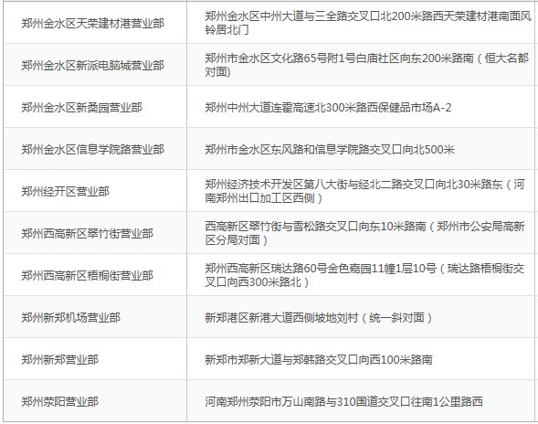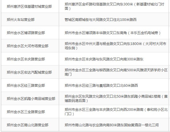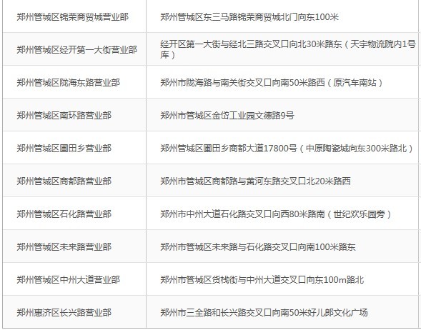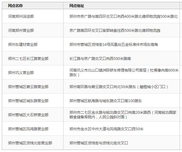 鄭州德邦物流營業網點表: