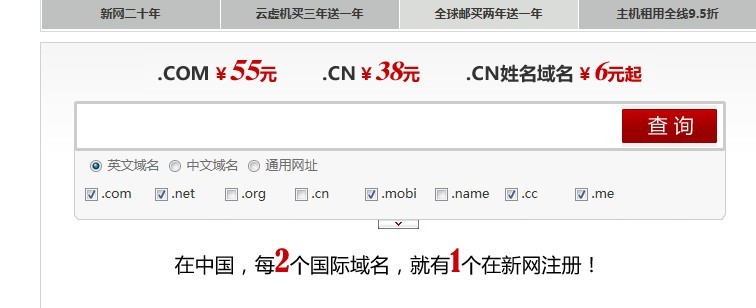 以前的界面,域名后綴比較多,有好幾排,現(xiàn)在只有一排了。