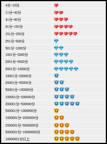 在交易中作為賣家的角色,其信用度分為以下20個級別: