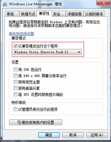 打開“開始”,“程序”,找到“Windows live”下面的“Winodws Live Messenger”,右擊此程序選擇屬性--兼容性?D將“以兼容模式運行這個程序”勾上,在下拉菜單中選擇Windows Vista(Service Pack 2)即可,之后重啟解決。