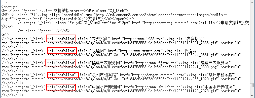 ![]() No.3:不宜交換內(nèi)頁鏈接。這一點(diǎn)并不是絕對(duì)的,假如對(duì)方站點(diǎn)的內(nèi)頁權(quán)重非常的高,也是可以考慮的,如果對(duì)方的站點(diǎn)時(shí)內(nèi)頁同時(shí)權(quán)重收錄等等不如你,那么即使對(duì)方說的多好聽,筆者都不建議你與其進(jìn)行交換。 No.4:不宜交換含js代碼的鏈接。這點(diǎn)是好多朋友換鏈接的時(shí)候忽視的。檢查的方我們可以把鼠標(biāo)至于對(duì)方站點(diǎn)的友鏈上 ,看一下狀態(tài)上的地址是否是跳轉(zhuǎn)地址,同時(shí)我們可以查看站點(diǎn)的頁面代碼,看看是否有跳轉(zhuǎn)的代碼,如下圖所示。 No.5:不宜交換導(dǎo)出鏈接太多的鏈接。根據(jù)蛋糕原理。分的人越多,你得到的就越少。即使對(duì)方的權(quán)重是9。但他有好幾百個(gè)友情鏈接。根據(jù)谷歌PR計(jì)算公式:PR(a)=d+(1-d)*(網(wǎng)頁A的PR值/網(wǎng)頁A導(dǎo)出的鏈接)+……(1-d)*(網(wǎng)頁N的PR值/網(wǎng)頁N導(dǎo)出的鏈接)。根據(jù)這個(gè)公式算下來,從這個(gè)站點(diǎn)上你所傳遞過來的權(quán)重少之又少,對(duì)此我們?cè)诮粨Q友鏈的時(shí)候,不要只是關(guān)注對(duì)方權(quán)重有多高,導(dǎo)出鏈接往往影響更大。 No.6:不宜交換含有nofollow標(biāo)簽的鏈接。nofollow標(biāo)簽做優(yōu)化的人都應(yīng)該清楚它的用處吧。他會(huì)阻止蜘蛛進(jìn)行跟蹤,同時(shí)也阻止了權(quán)重的傳遞。查詢的方法也很簡單,我們只要直接打開對(duì)方站點(diǎn)頁面的源文件,查看其中nofollow的事情情況。當(dāng)然也并不是一定不換,如果是一些流量大的站點(diǎn)可以換,雖然有該標(biāo)簽,但是這也可以為我們的站點(diǎn)帶來一定的流量。就如同我們知道百度經(jīng)驗(yàn)的外鏈有nofollow標(biāo)簽,但是百度經(jīng)驗(yàn)的外鏈可以很好的為我們帶來流量,我們也是可以適當(dāng)?shù)慕ㄔO(shè)的。