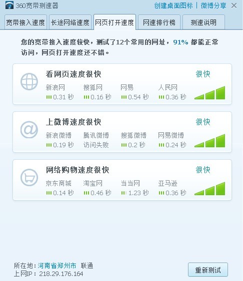 360寬帶測速器測試網頁打開速度